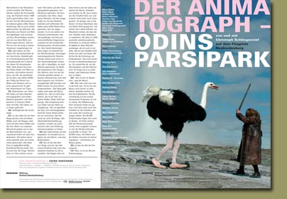 Programmzeitung für Christoph Schlingensiefs "Der Animatograph Odins Parsipark" auf Schloss Neuhardenberg