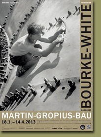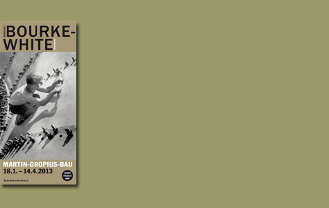 Plakat und Flyer für die Ausstellung „Margarete Bourke-White. Fotografien 1930 1945 ", im Martin-Gropius-Bau, Berlin