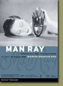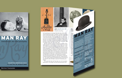 Plakat und Faltblatt für die Ausstellung „Man Ray. Unbekümmert, aber nicht gleichgültig", im Martin-Gropius-Bau, Berlin