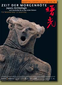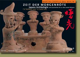 Plakate für die Ausstellung "Zeit der Morgenröte Japans Archäologie und Geschichte bis zu den ersten Kaisern" im Martin-Gropius-Bau, Berlin