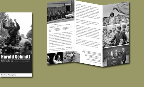 Plakat und Faltblatt für die Ausstellung „Harald Schmitt Sekunden, die Geschichte wurden", im Martin-Gropius-Bau, Berlin
