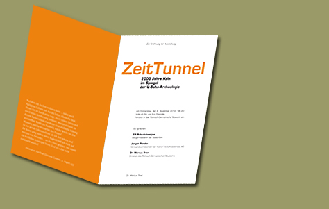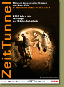 Plakate für die Ausstellung „Zeittunnel 2000 Jahre Köln im Spiegel der U-Bahn-Archäologie ", im Römisch-Germanisches Museum der Stadt Köln